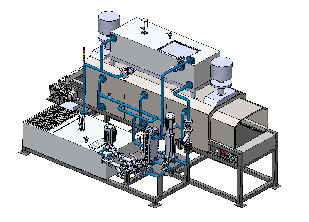 An industrial automatic cooling machine using water spray is a system designed to automatically cool heated materials or components by spraying water over them. The water spray absorbs and removes heat quickly, reducing the temperature of the product in a controlled manner.These systems are commonly used in furnaces, heat-treatment processes, and metal manufacturing to ensure fast cooling, maintain product quality, and improve production efficiency.