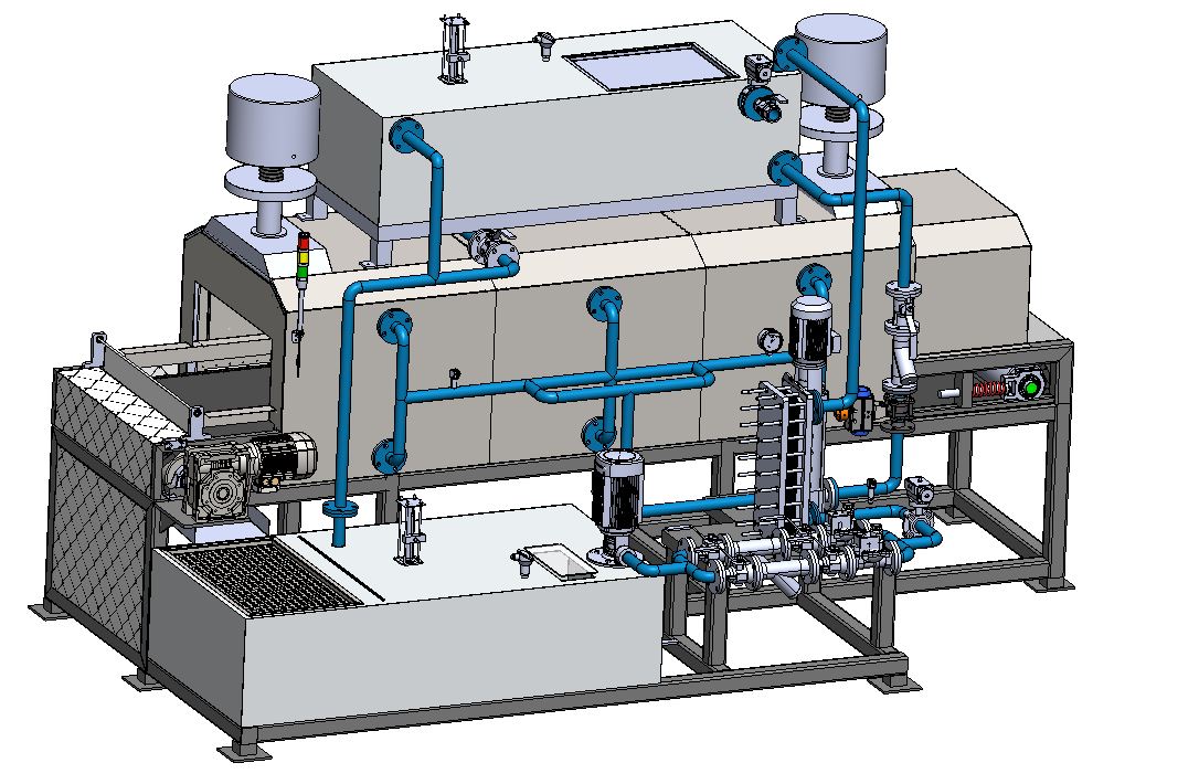 An industrial automatic cooling machine using water spray is a system designed to automatically cool heated materials or components by spraying water over them. The water spray absorbs and removes heat quickly, reducing the temperature of the product in a controlled manner.These systems are commonly used in furnaces, heat-treatment processes, and metal manufacturing to ensure fast cooling, maintain product quality, and improve production efficiency.